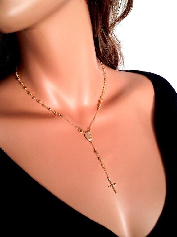 送料無料 ラグジュアリークロスペンダントネックレス女性女性ジュエリーロザリーネックレスゴールドネックレスカラーファインジュエリー レース アクセサリー AE00887778485025177