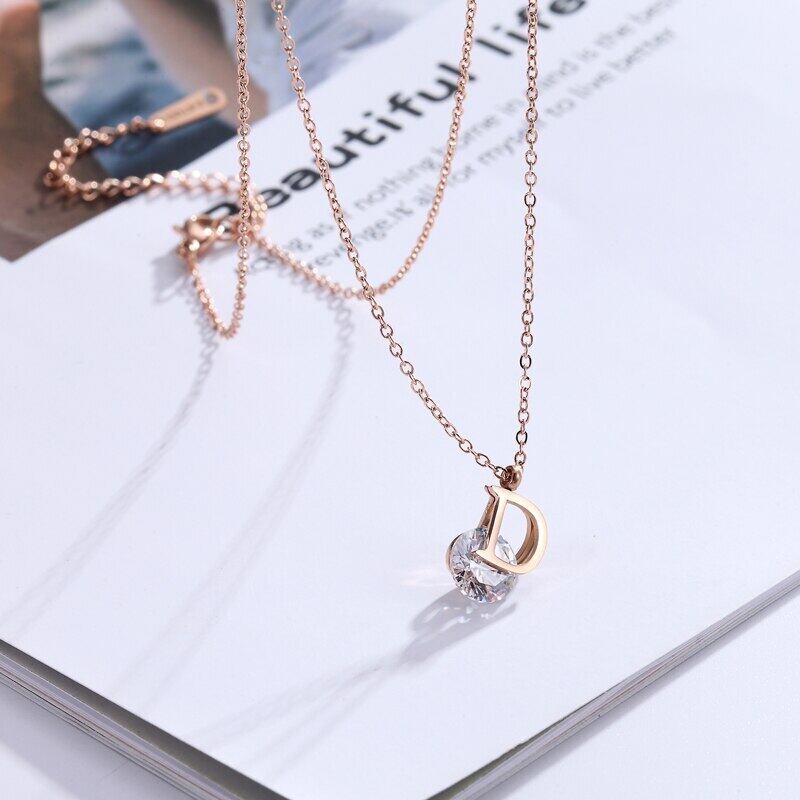 送料無料 レタークリップシャイニーラージクリスタルネックレスペンダントレディースステンレススチールローズゴールドラブコリアーウーマンカラー レース アクセサリー AE00887742710439343