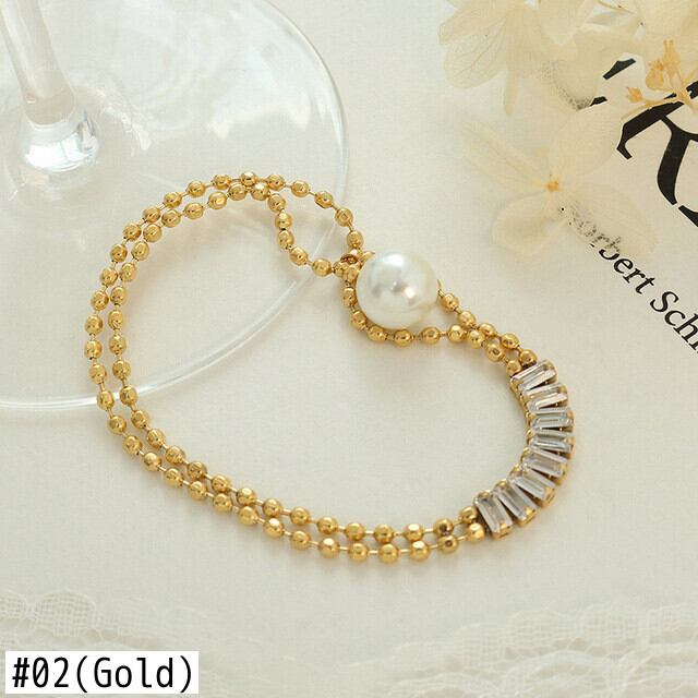 送料無料 ライトラグジュアリージルコン象眼細工イミテーションパールセットバックルステンレススチールブレスレットレディースウェディングラブジュエリー 真珠 アクセサリー AE00887757724441864