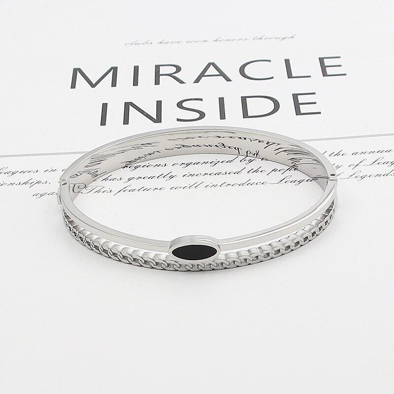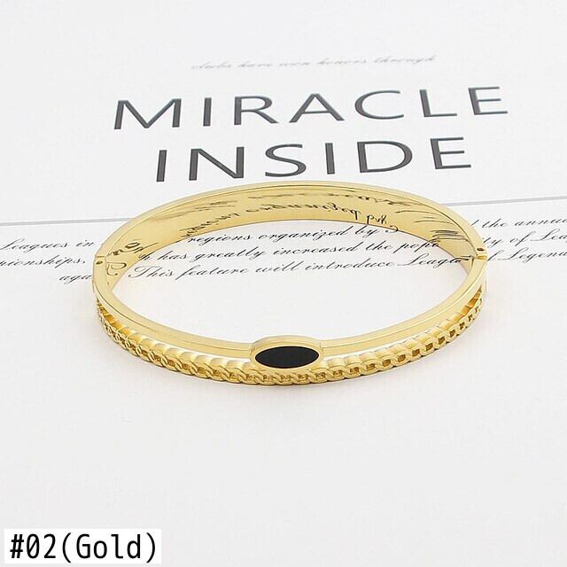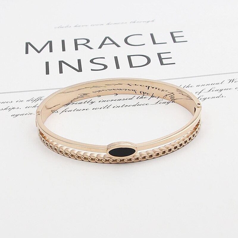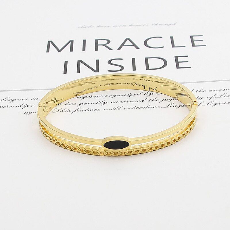 送料無料 バイラテラルチェーンシェイプとオーバルブラックエナメルバングルステンレススチールゴールドカラー女性ブレスレットジュエリーギフト アクセサリー AE00887744734738765