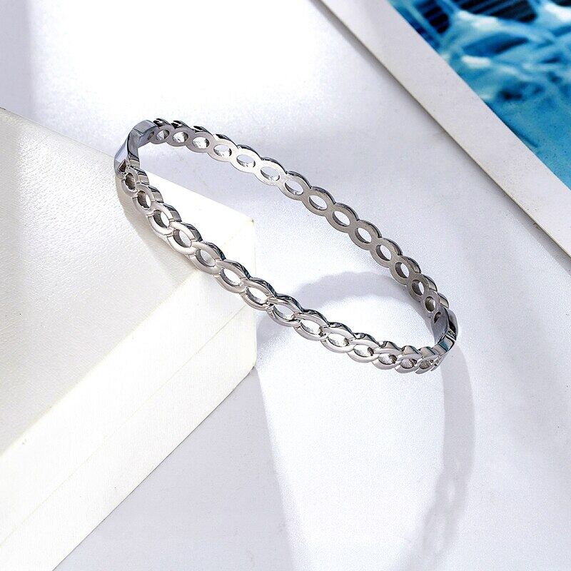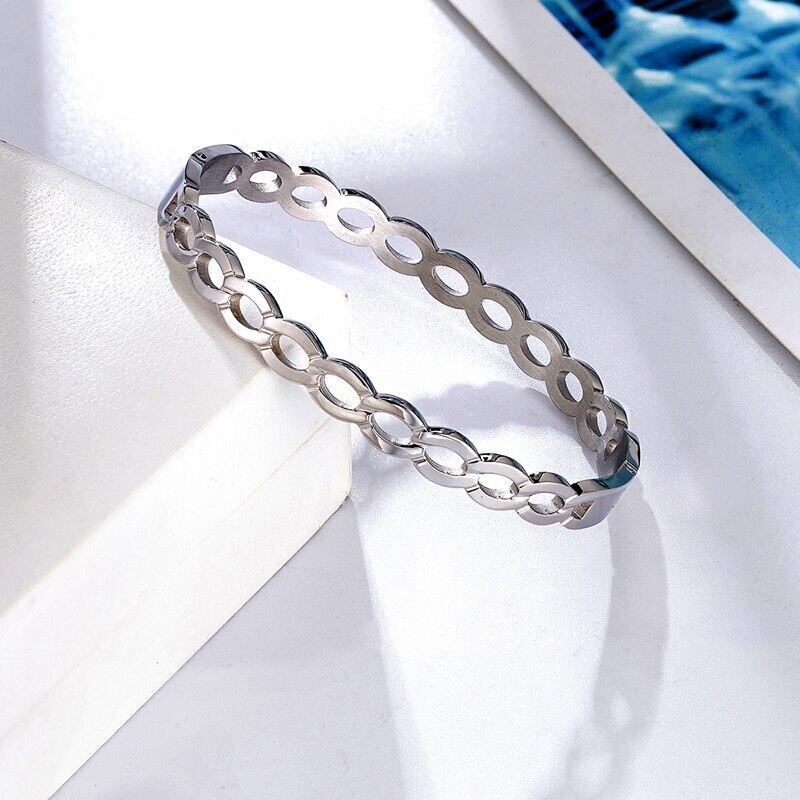 送料無料 ユニークな中空イミテーションチェーンステンレススチールブレスレットラブバングルジュエリーギフト アクセサリー AE0088773002881118
