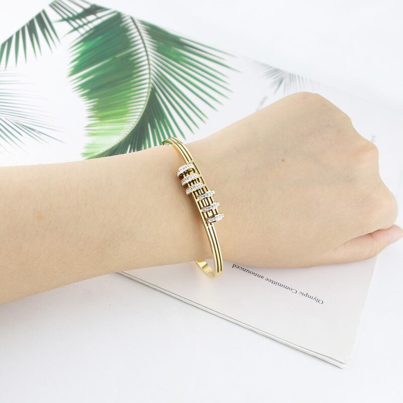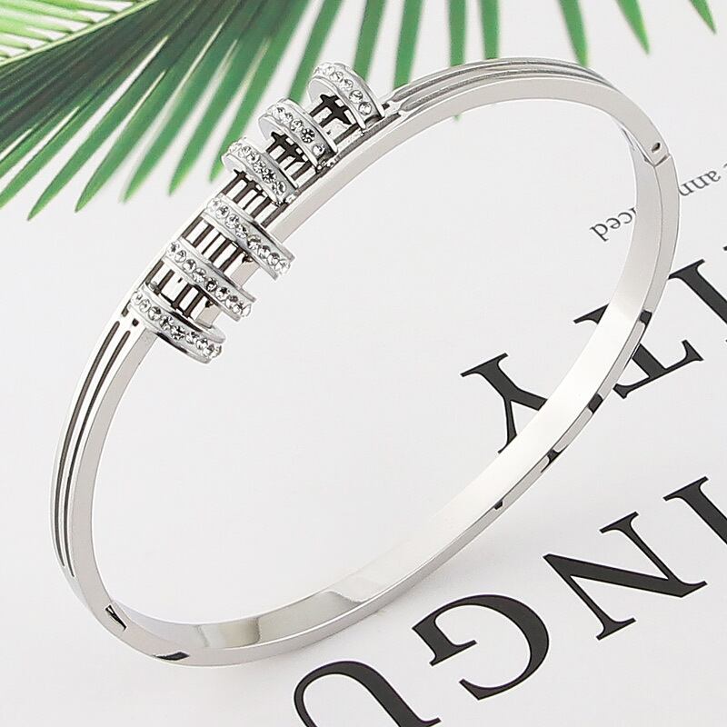 送料無料 ステンレス鋼の宝石類の水晶ブレスレットハーフフェイス中空バングル女性の愛の贈り物 アクセサリー AE00887782639552470