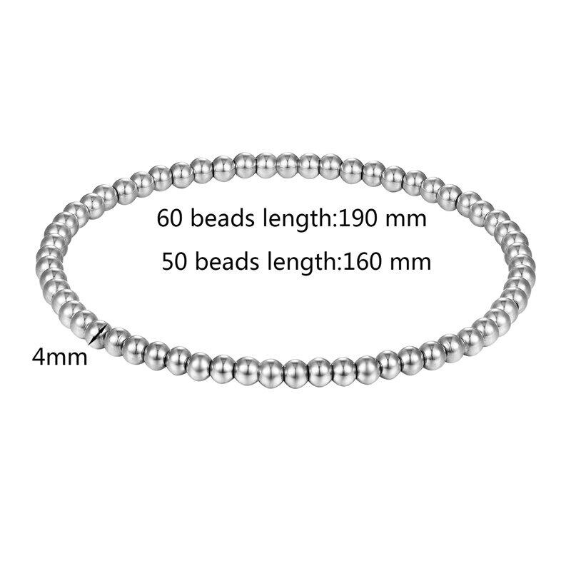 送料無料 男性女性ワイド4mmおよび6mm伸縮性ビーズブレスレットステンレス鋼2サイズジュエリーSL0005 アクセサリー AE00887715644987423