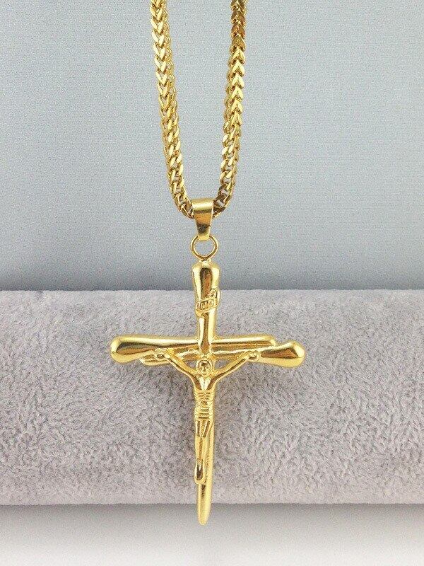 送料無料 3mm 24"フランコチェーンイエストゥザクロスペンダントヒップホップスタイルネックレス&ペンダントゴールドカラーメンズジュエリー レース アクセサリー AE00887776717579799