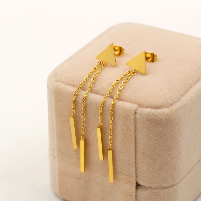 送料無料 NEW欧米ファッションイヤリングチタンスチールローズゴールドトライアングルイヤリングロングテルレトロイヤリングイヤリング 指輪 アクセサリー AE00887749602178435