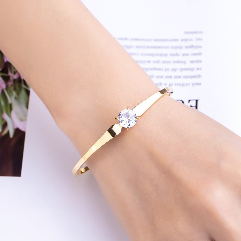 送料無料 滑らかなキュービックジルコニア春のオープニングステンレススチールブレスレット女性は結婚式のギフトバングルジュエリーが大好き スプリング 春物 風信子石 アクセサリー AE00887733731219950