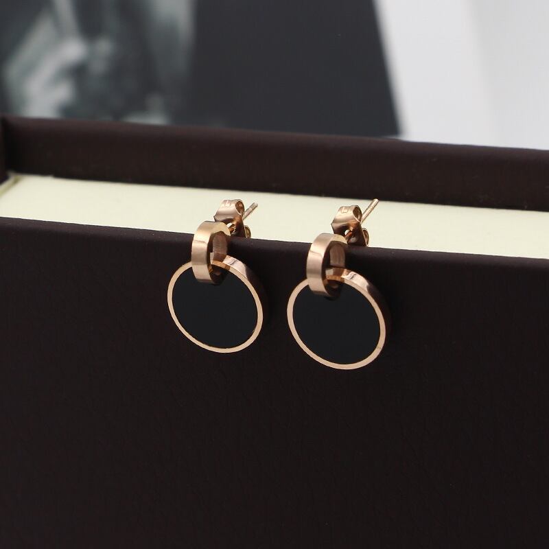送料無料 ドロップ型ハンギングブラックラウンドケーキイヤリングタイド女性ファッションワイルドイヤリングアクセサリーチタンスチールジュエリー 指輪 アクセサリー AE00887713005558062