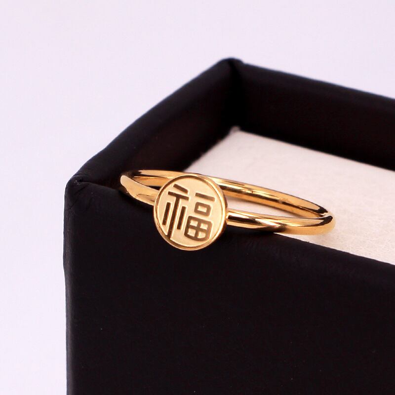 送料無料 ヒートチャイニーズスタイルブレッシングラウンドアニロテールバグステンレススチールゴールドカラーリング女性アニバーサリーギフト卸売 指輪 アクセサリー AE00887761824955970
