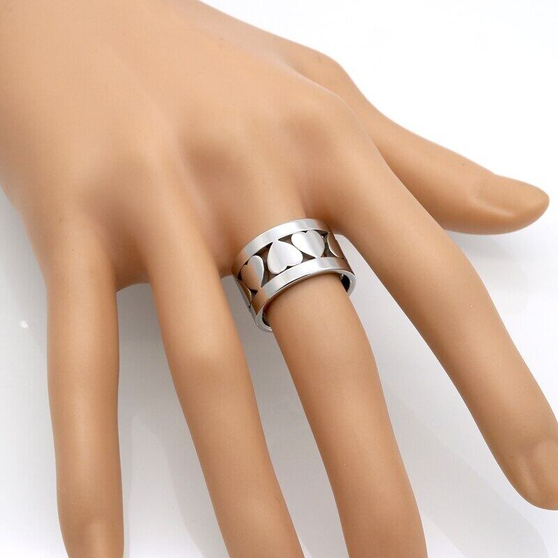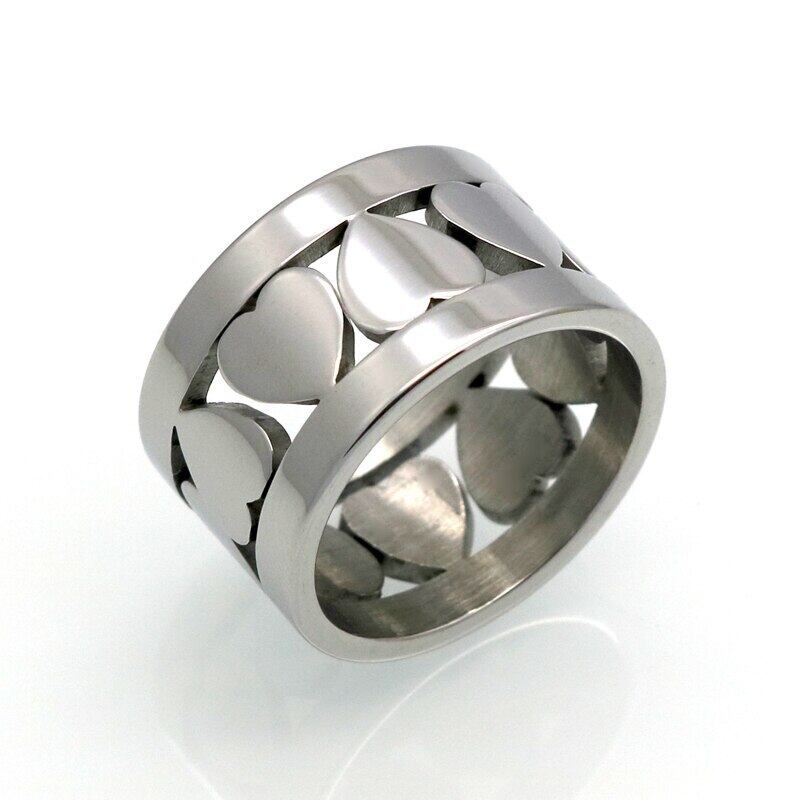 送料無料 「サークル内の10のハート」アネルラブハートリングアニバーサリーエンゲージメント結婚指輪女性チタンスチールジュエリー アクセサリー AE00887757581877391