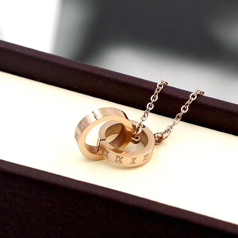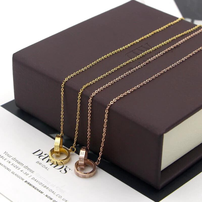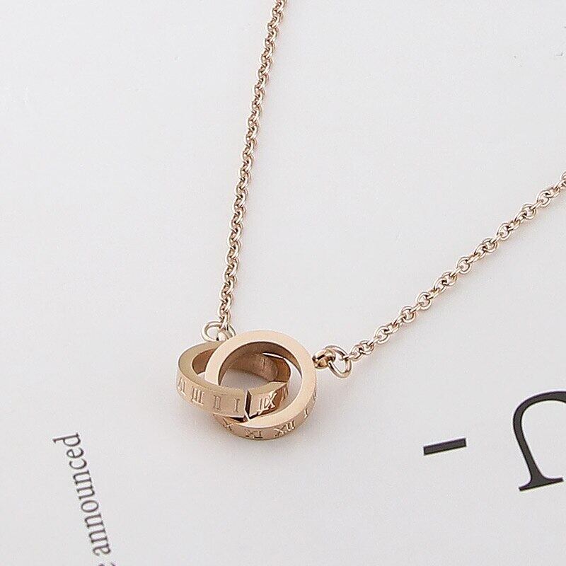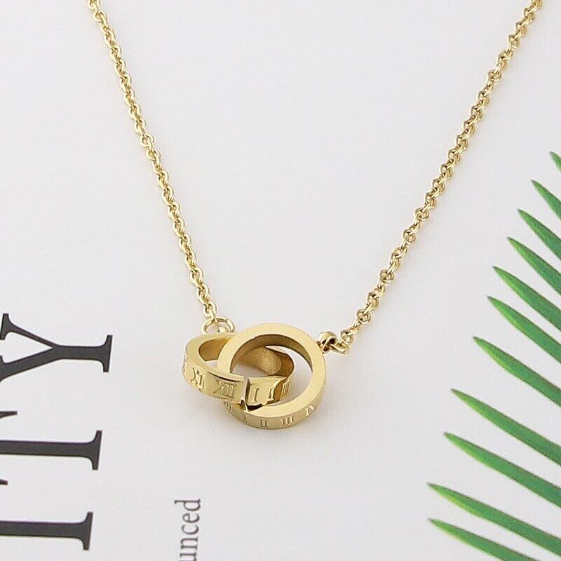 送料無料 ホットセール新しいファッションローマ数字ダブルサークルインターロッキング女性ネックレス女性ジュエリー卸売 レース アクセサリー AE00887785351843491
