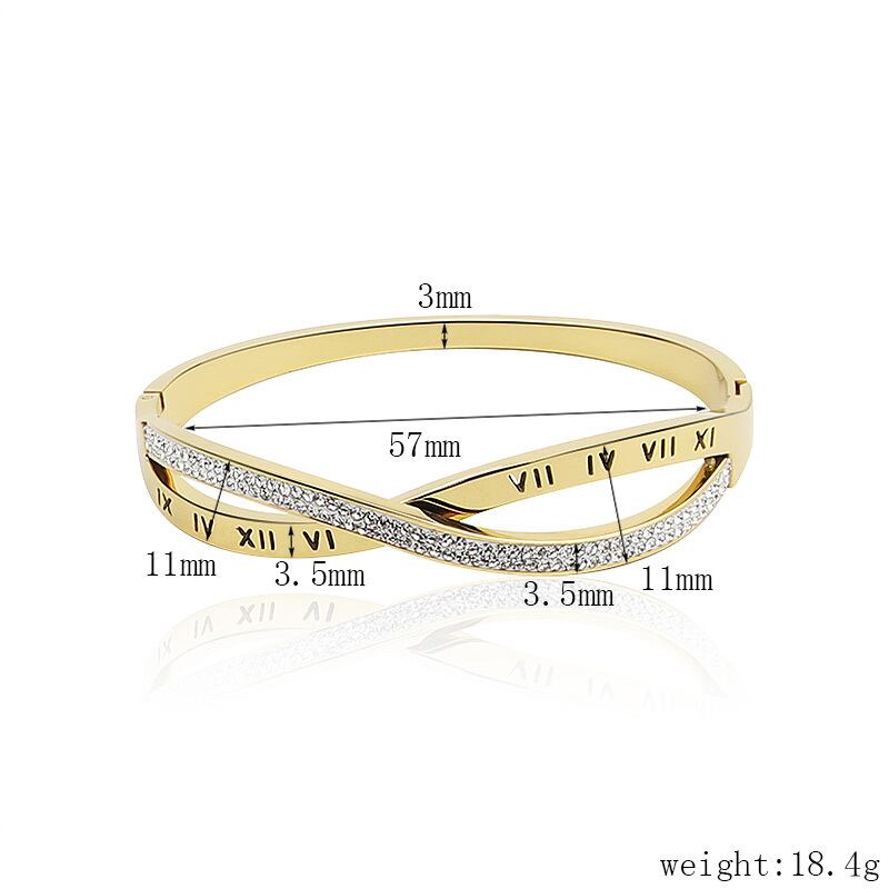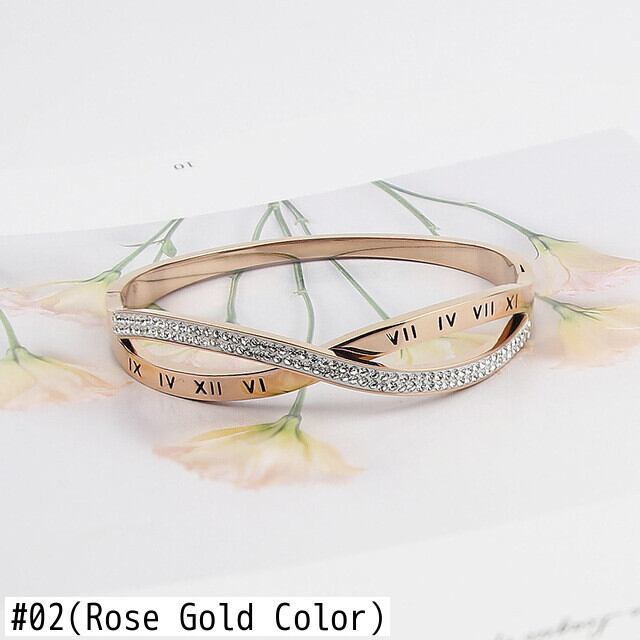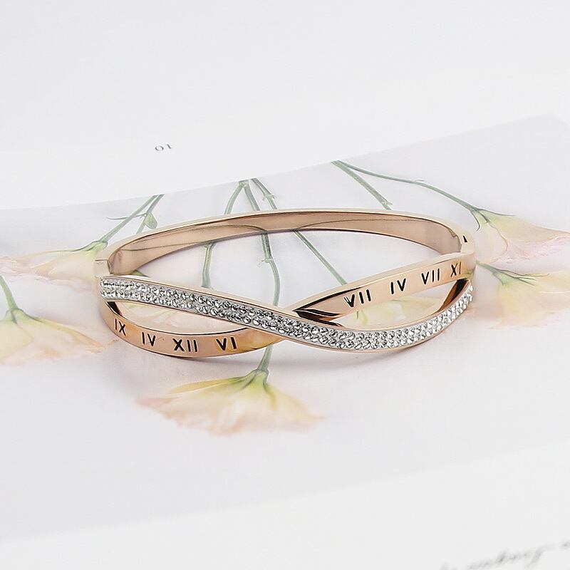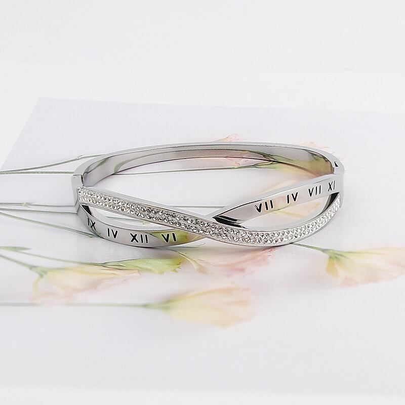 送料無料 ホットクリックジュエリークロスジルコンとローマ数字の女性バングルチタンスチールトップブレスレットラブバングルギフト アクセサリー AE00887714436187466