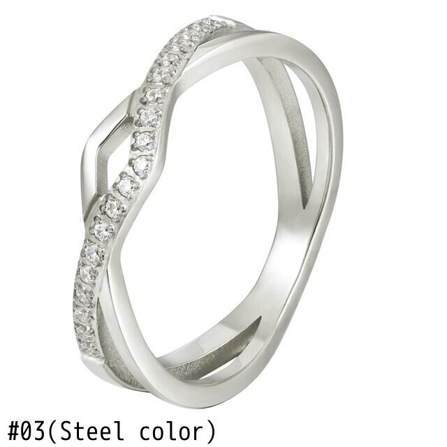送料無料 ダブルラインクロスワンラインCNC象眼細工ジルコンリングチタンスチールポリッシュジュエリーウーマンリングラブギフト 指輪 アクセサリー AE00887782594196974