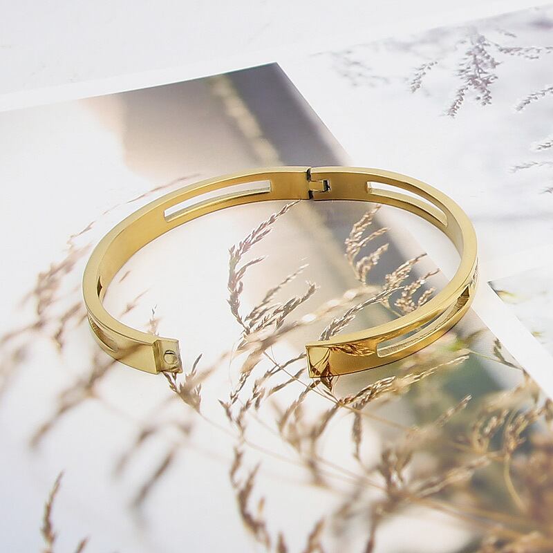 送料無料 高級クリスタルジュエリー中空滑らかなステンレス鋼ブレスレットブレスレットパーティーウェディングギフト アクセサリー AE00887762989312409
