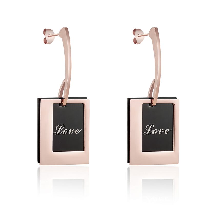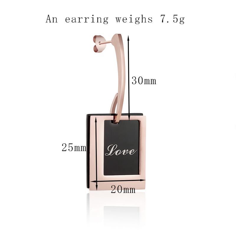 送料無料 ステンレス鋼メッキ黒刻まれた愛のパターンのイヤリングダブル長方形ローズゴールド女性のイヤリング ブラック 指輪 アクセサリー AE00887789868942870