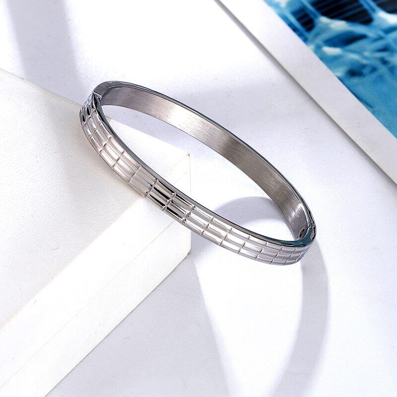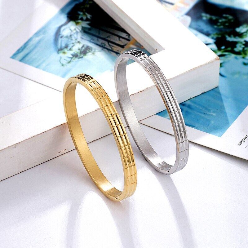 送料無料 ユニークなステレオライン長方形ステンレススチールブレスレットラブバングルジュエリーギフト アクセサリー AE00887751775256647
