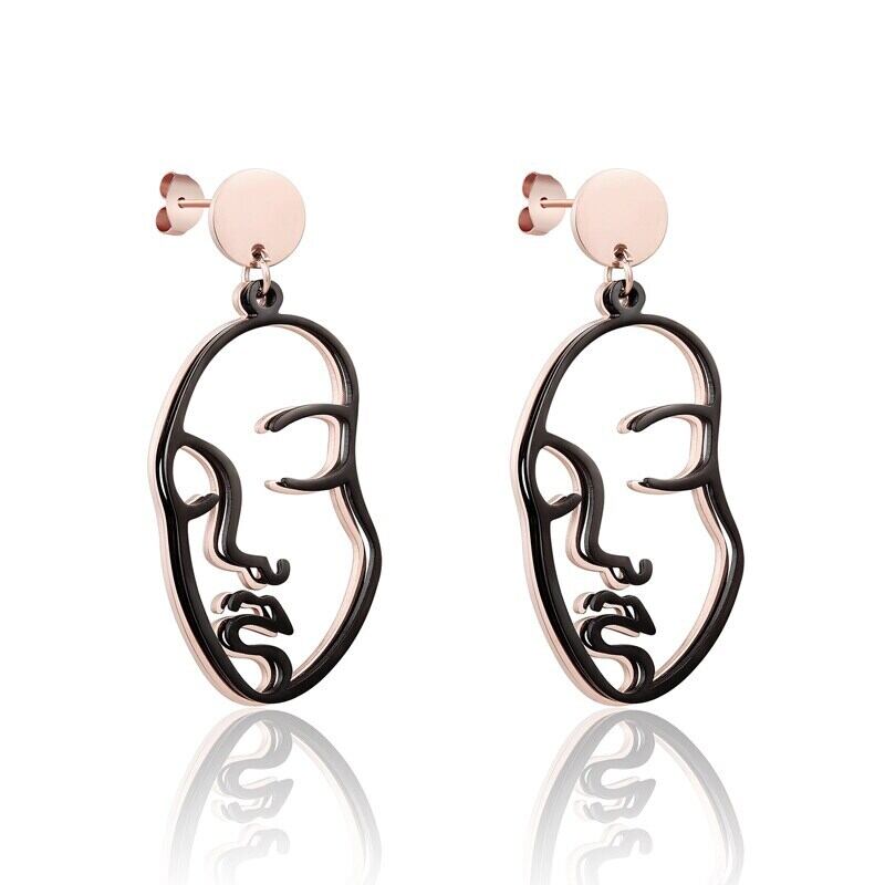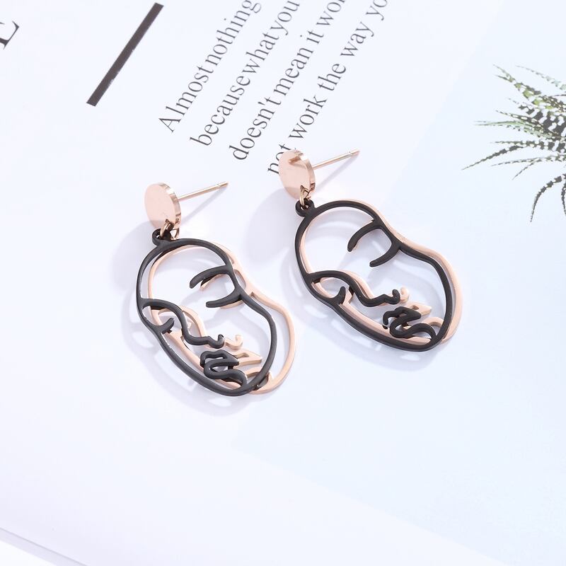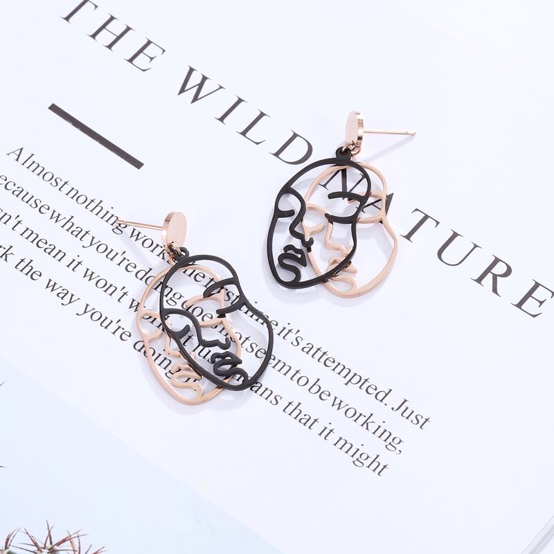 送料無料 抽象的なスタイリッシュな中空アウトダブルレイヤーフェイスダングルイヤリングガールズステンレススチールイヤリングブークルドレイユ 指輪 アクセサリー AE00887783456255939