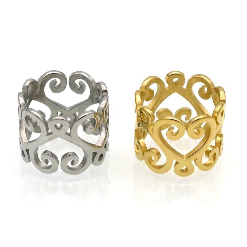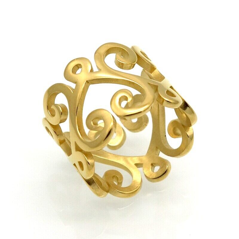 送料無料 高級レトロスタイルスチールリングゴールドカラーホローハートノットラブリングパーティーかわいいリング女性ジュエリーギフト 大人ガーリー スウィート キュート カジュアル 指輪 アクセサリー AE00887777811302083