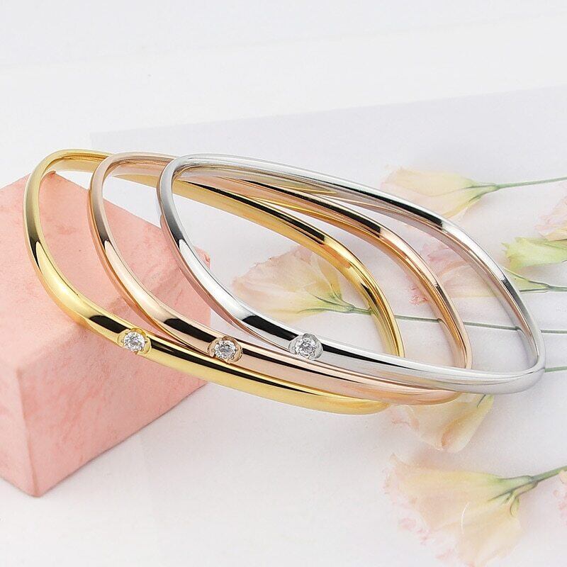 送料無料 周囲が17cm未満のクローズドバングルウェアクリスタルチタンスチールブレスレットラブバングル女性ウェディングジュエリー アクセサリー AE00887739818312808