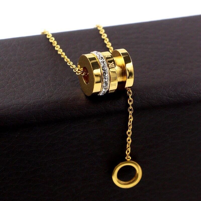 送料無料 可動ジルコンとローマ数字サークルペンダントネックレスハングスモールサークルチタンスチールネックレスギフトウーマン レース アクセサリー AE00887793152658079