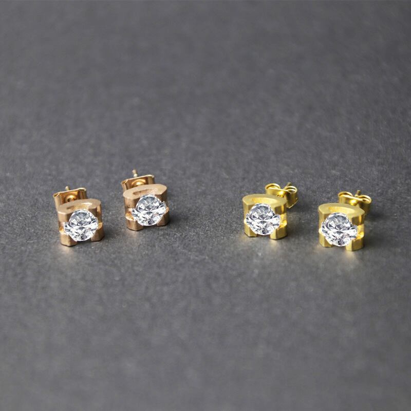 送料無料 レディースジュエリー1カラットクリスタルイヤリングローズゴールドチタンスチールイヤリングイヤリングウィメンズベストギフト 指輪 アクセサリー AE00887771514192143