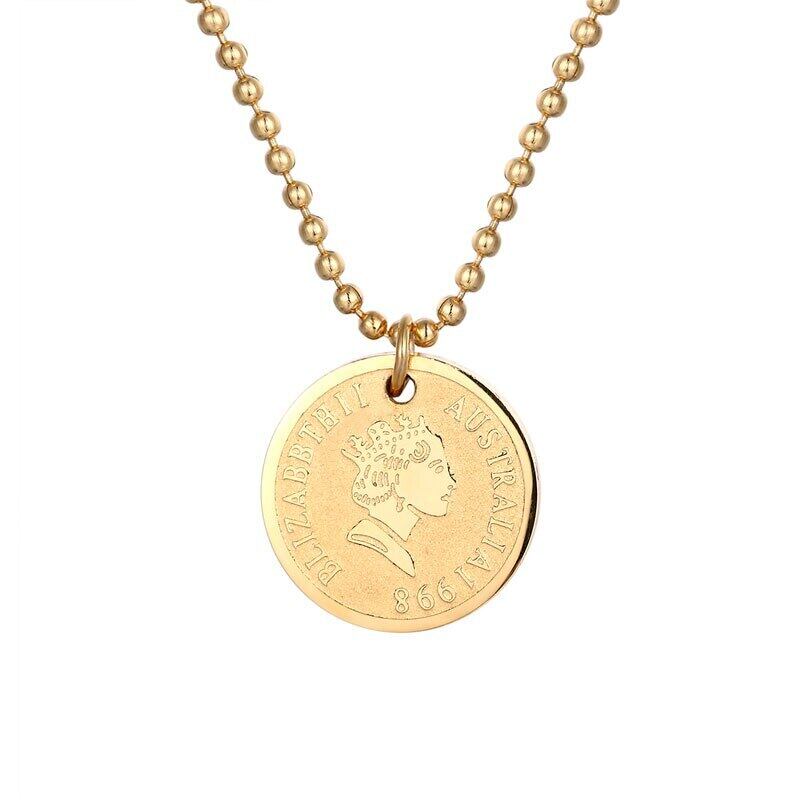 送料無料 ヴィンテージクイーンヘッドポートレートペンダントネックレスステンレススチールビーズネックレスジュエリー女性のお土産ギフト レース ビンテージ アクセサリー AE00887744589131422