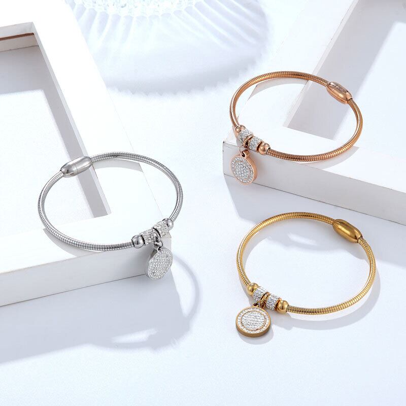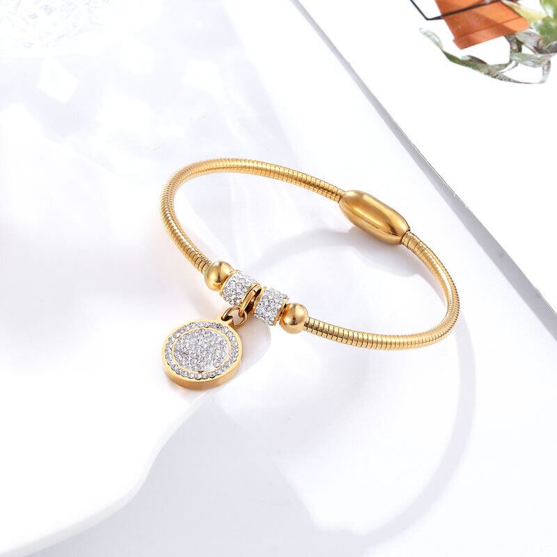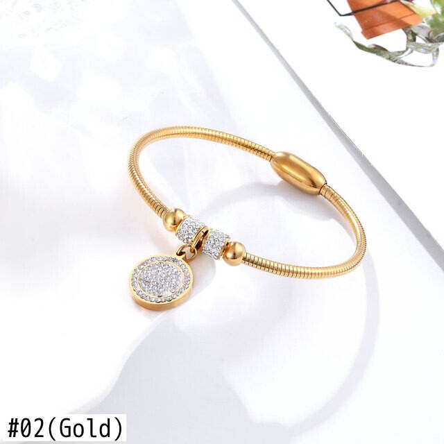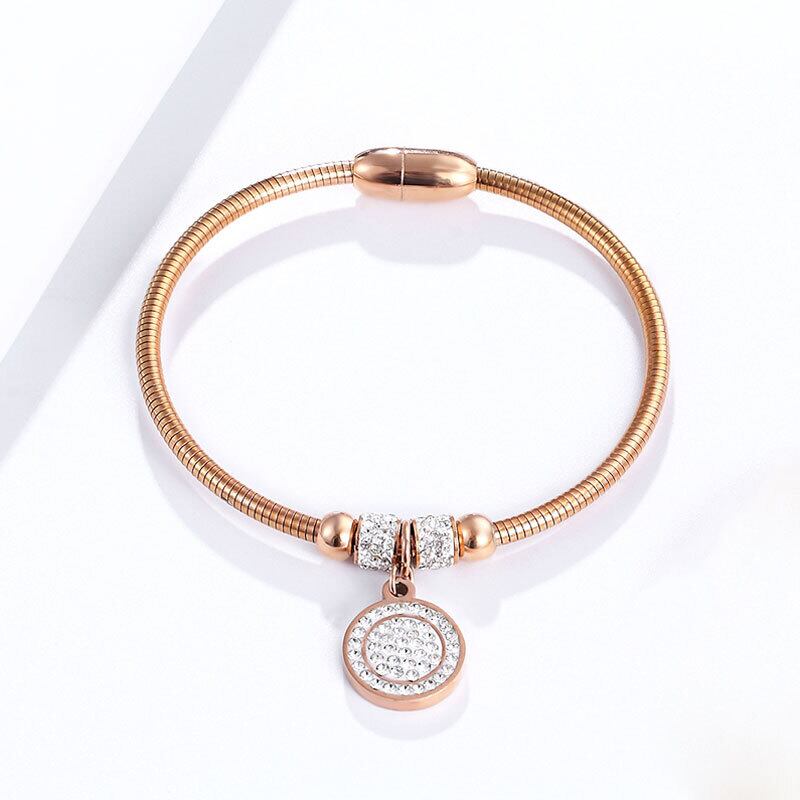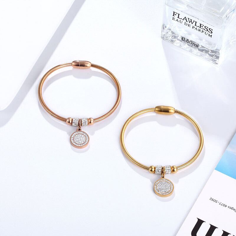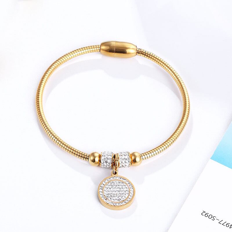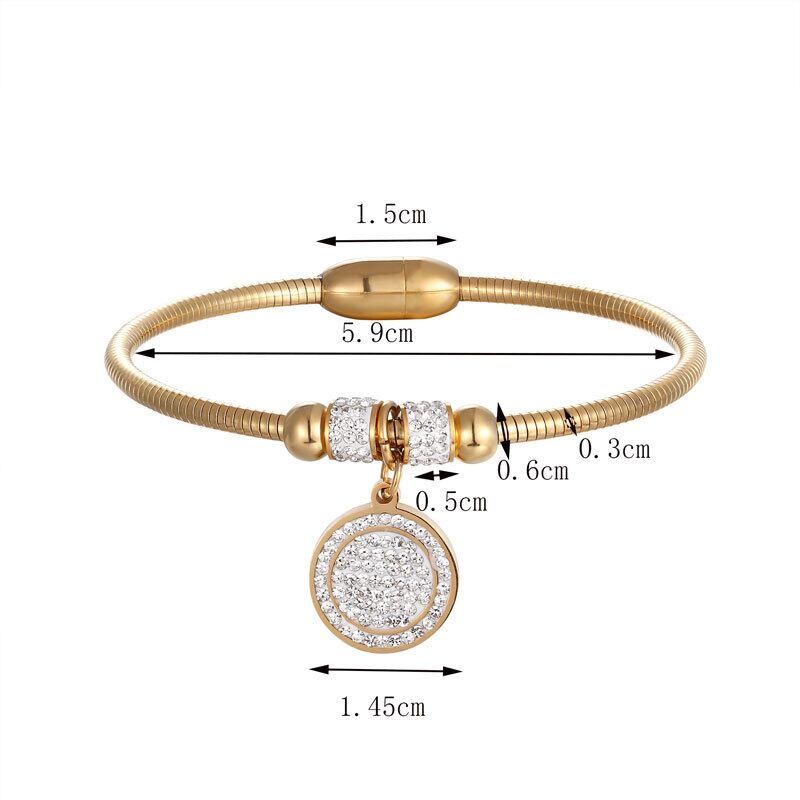 送料無料 美しいフルジルコンサークルチャームブレスレットバングル女性ステンレススチールマグネットクラスプスネークチェーンゴールドメッキバングル アクセサリー AE00887732164819887