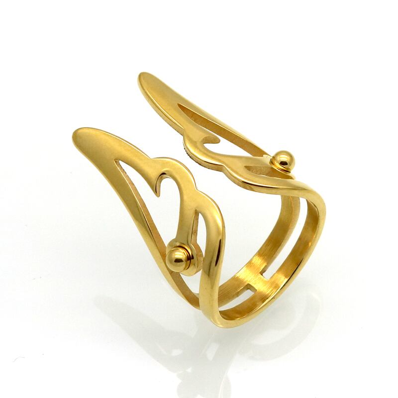 送料無料 アイシェイプのユニークなヘッド中空アウトステンレススチールゴールドカラーリング女性用ジュエリーAneisAnillosBagueパーティーリング 指輪 アクセサリー AE00887796212717106