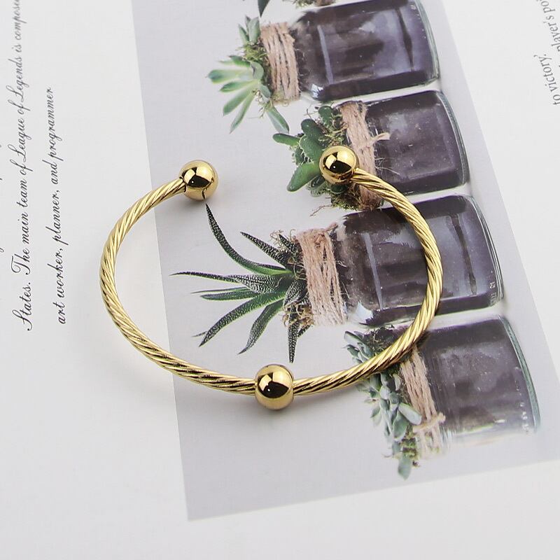 送料無料 ホットステンレススチールジュエリーツイストストリングスチールボールバングル女性ブレスレットパーティーギフト アクセサリー AE00887763504549865