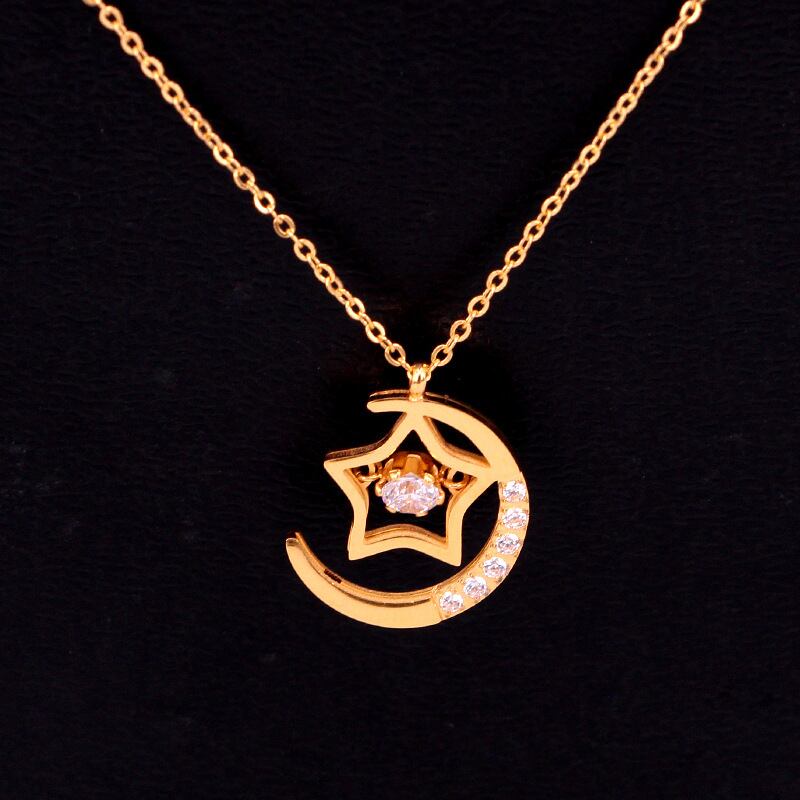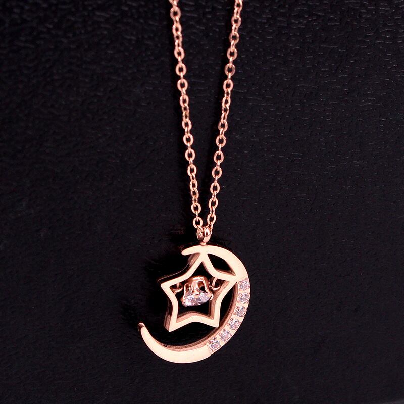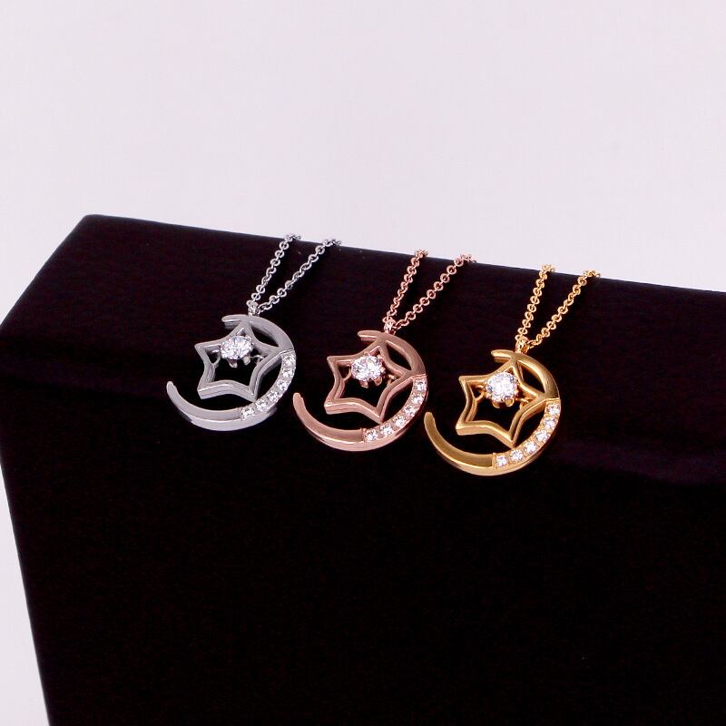 送料無料 新しいマイクロ象眼細工のクリスタルスタームーンネックレス女性のネックレスクリスタルネックレス女性のジュエリー卸売 レース アクセサリー AE00887796690077440