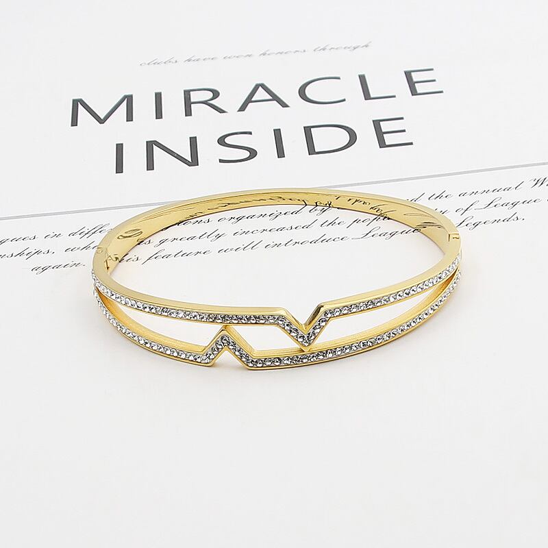 送料無料 クリック美しい2つのV字型ジルコンブレスレット&バングル女性ステンレス鋼ゴールドカラーバングルジュエリーウェディングギフト アクセサリー AE00887718727913774