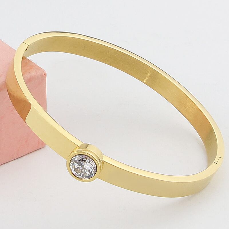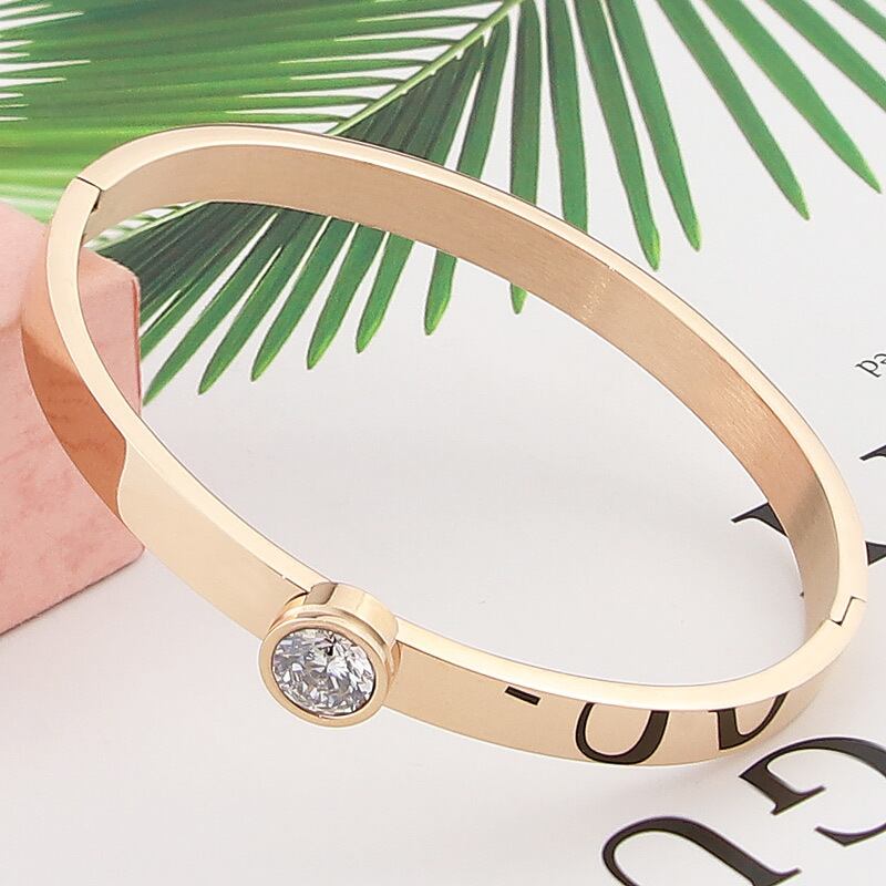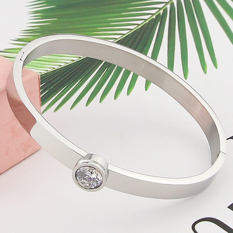 送料無料 有能で寛大なステンレス鋼の滑らかなクリスタルブレスレットパーティーギフトラブバングルジュエリー アクセサリー AE008877874493110