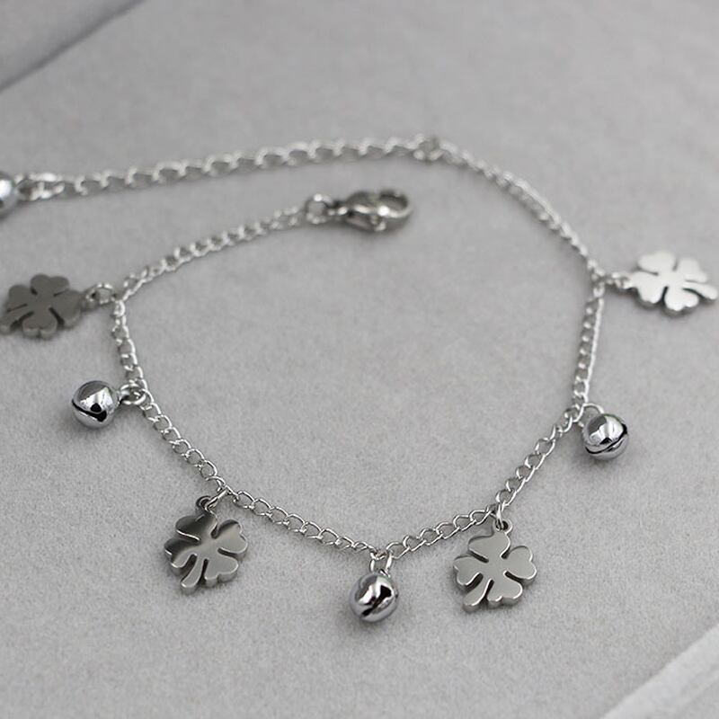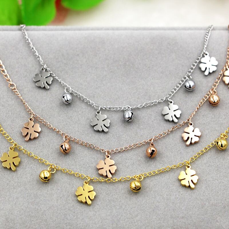 送料無料 花とベルのアンクレット女性のチタン鋼ゴールドローズゴールドの色女性のジュエリーアンクレット フラワーデザイン アクセサリー AE0088773880817581