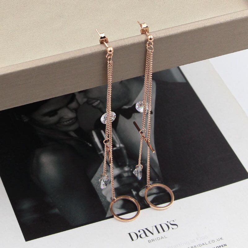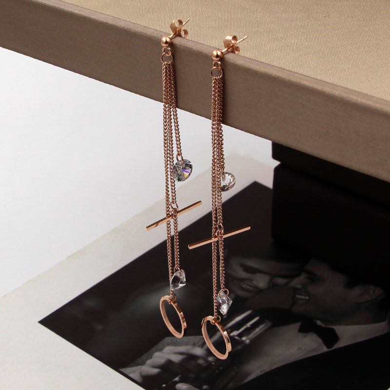 送料無料 女性ジュエリーロングビーズハンギングサイドチェーンクリスタルローズゴールドTelチタンスチールスタッドピアス女性 イヤリング リング 指輪 アクセサリー AE00887748316502699