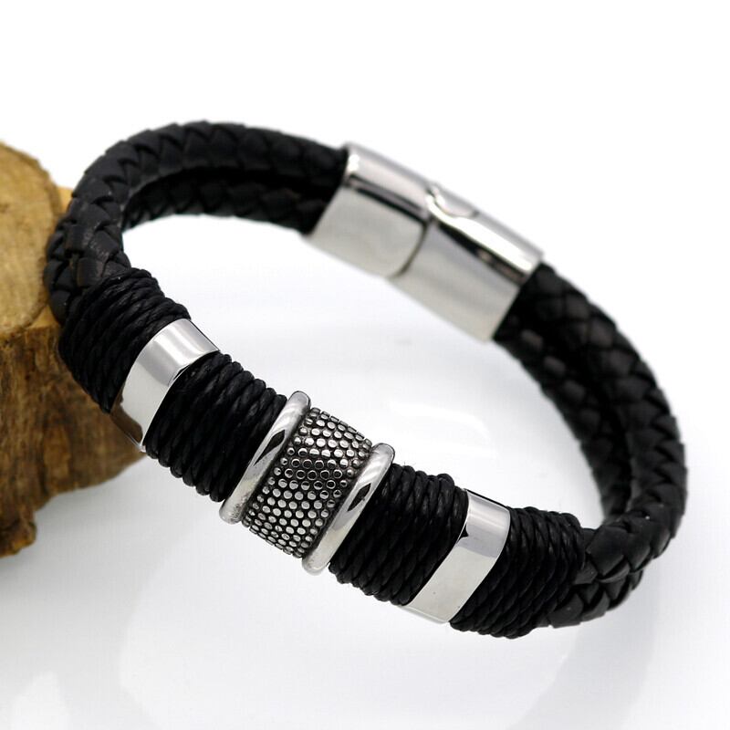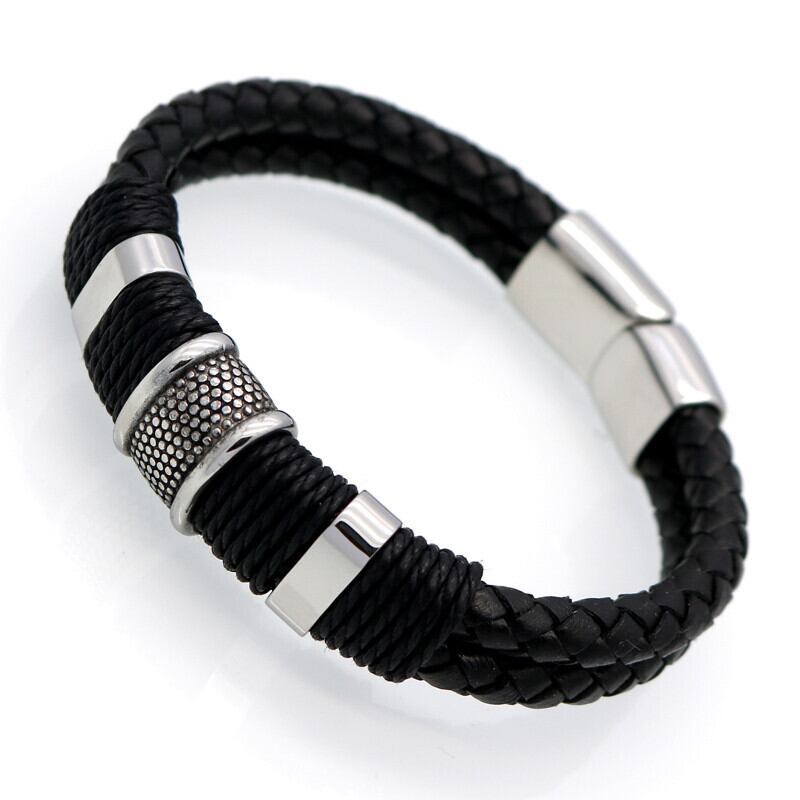 送料無料 手作りの本革織り二重層マンレザーブレスレット/スポーティな自転車オートバイ繊細なクールな男性のジュエリー 天然 アクセサリー AE00887727620184858