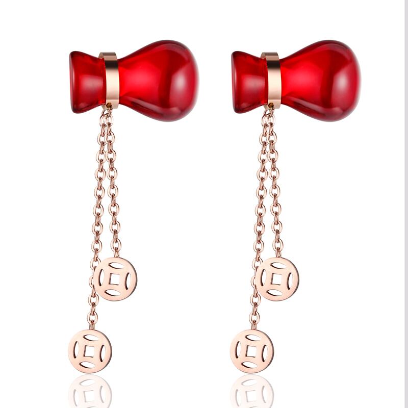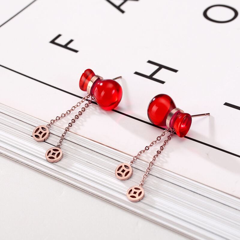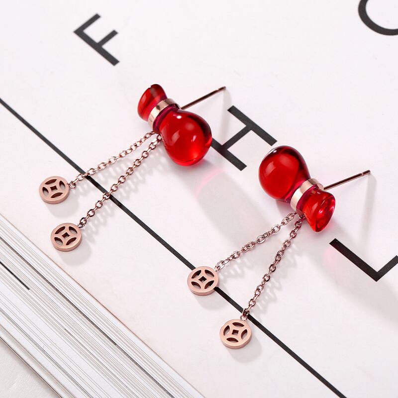 送料無料 かわいい赤いひょうたん祝福バッグ銅マネーtelイヤリングチタン鋼イヤリングジュエリー女性の結婚式 レッド 大人ガーリー スウィート キュート カジュアル 指輪 アクセサリー AE00887766922646141