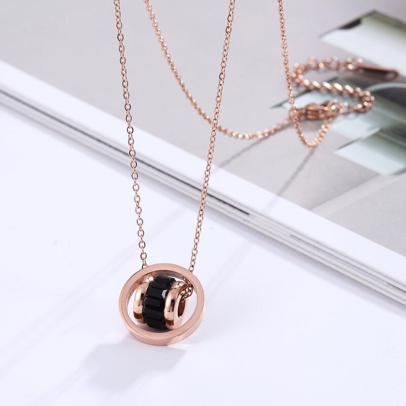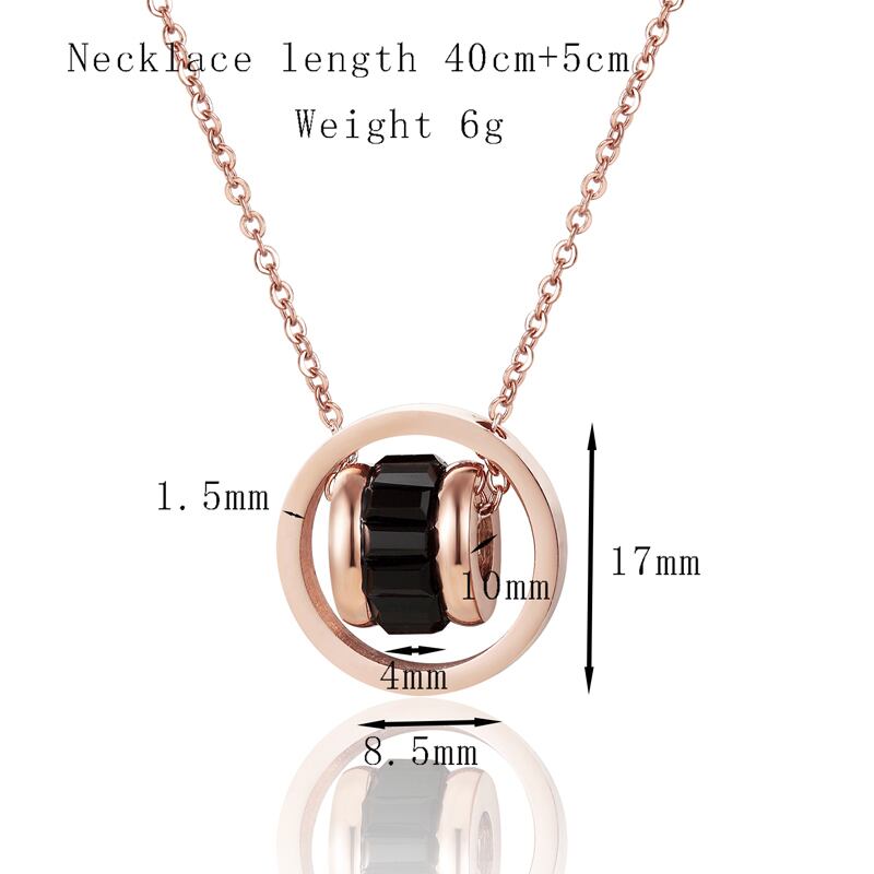 送料無料 円筒形の象眼細工の黒い水晶ペンダントネックレスの内側のステンレス鋼の外側の円ローズゴールド愛の宝石類の女性 ブラック レース アクセサリー AE00887789522623454