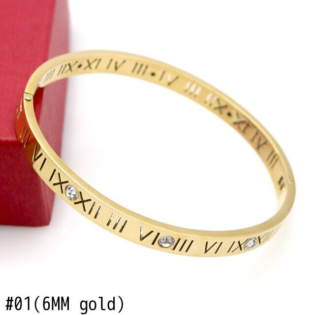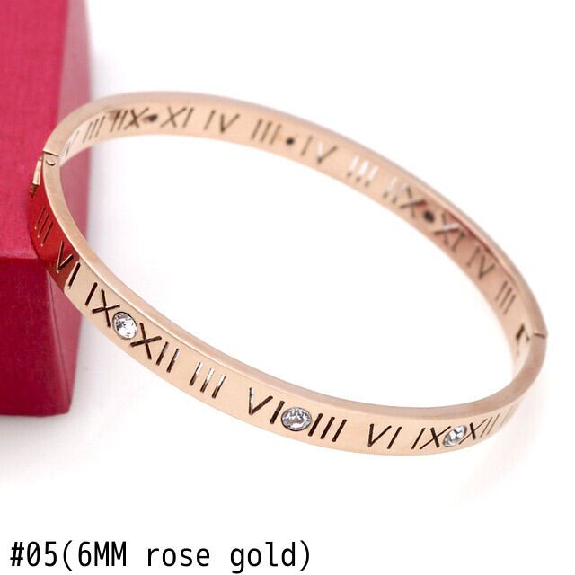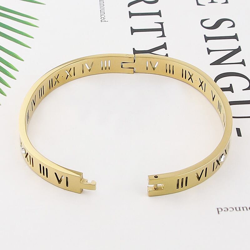 送料無料 ホットオープニングチタンスチールバングルクリスタルローズゴールドホワイトゴールドバングルローマ数字レディースブレスレット アクセサリー AE0088779753825635