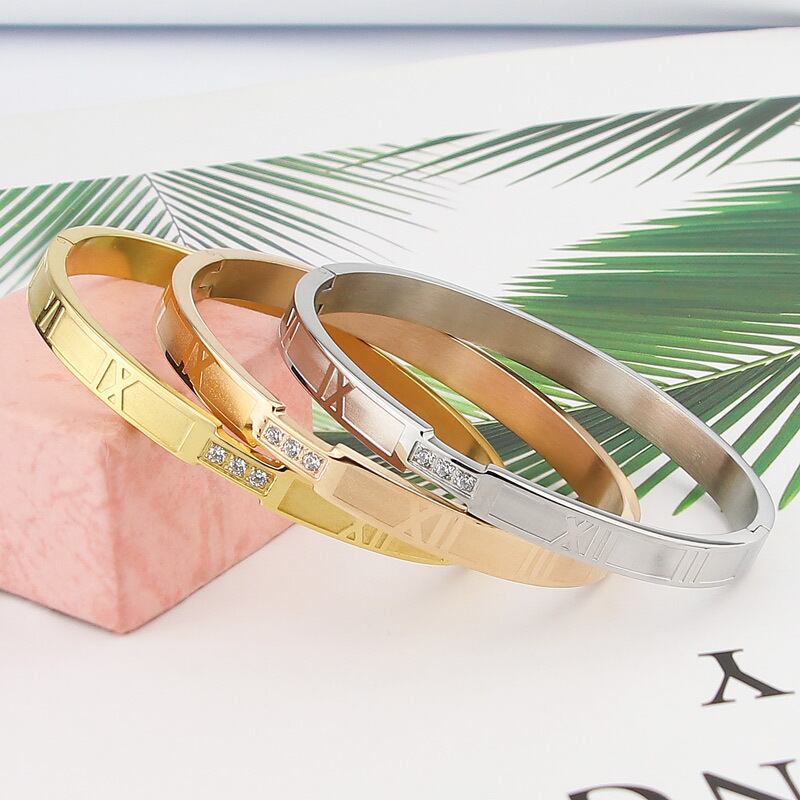 送料無料 ステンレス鋼の愛の宝石類の手紙ローマ数字象眼細工の水晶ブレスレット女性のブレスレットパーティーギフト アクセサリー AE00887781244085127