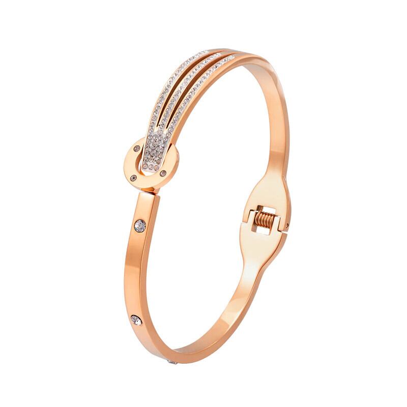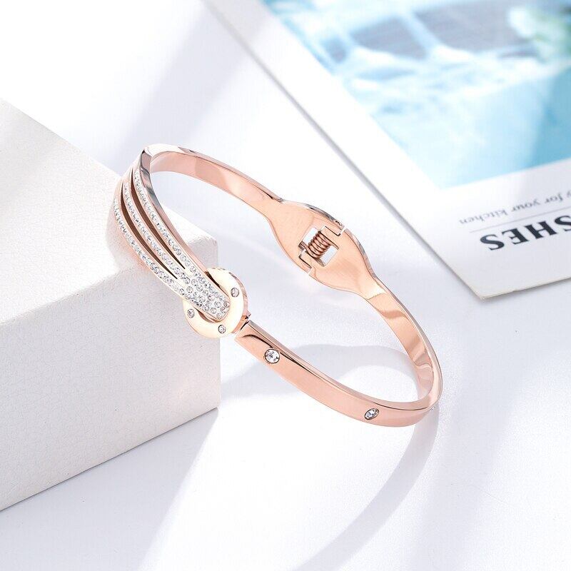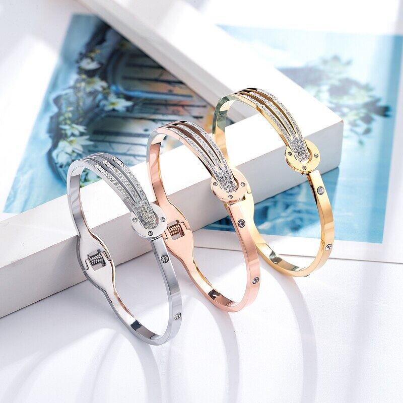 送料無料 ホットNEWクリスタルホロウスプリングオープンブレスレットレディースラブギフトステンレススチールブレスレットジュエリー 春物 アクセサリー AE00887712236427973