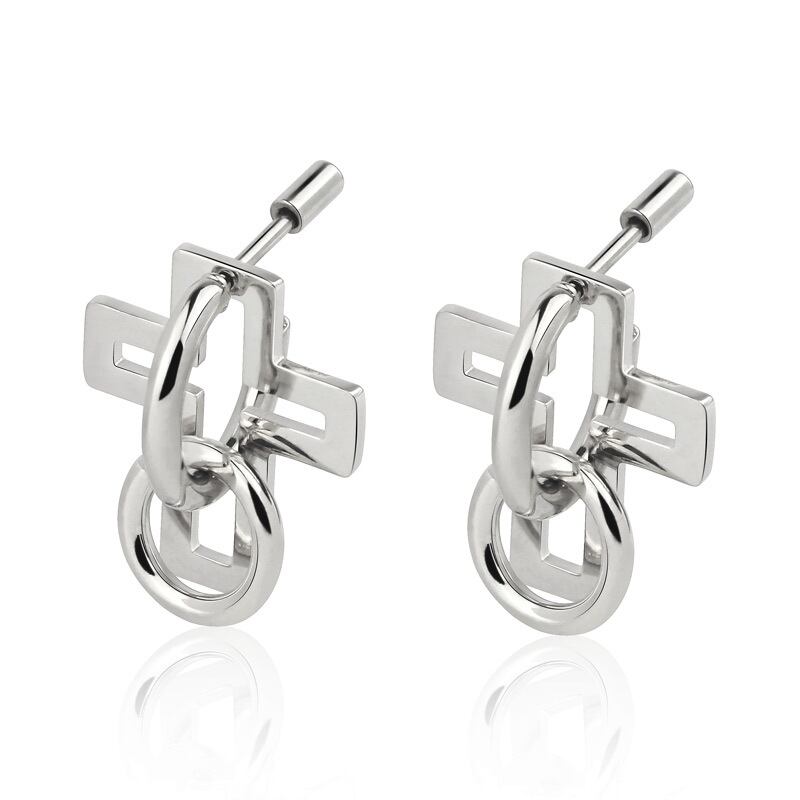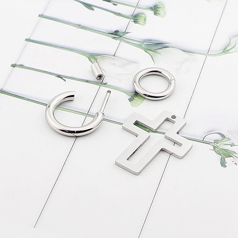 送料無料 ジュエリーステンレススチール取り外し可能組み立て可能クロスラウンドペンダントイヤリング女性パーティーウェディングギフト 指輪 アクセサリー AE00887737099546961