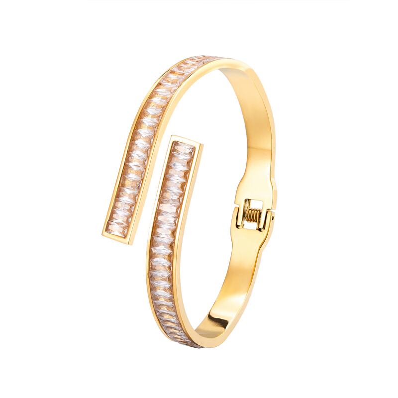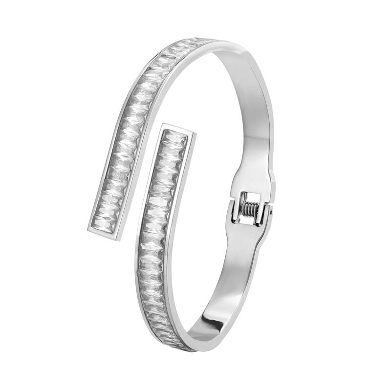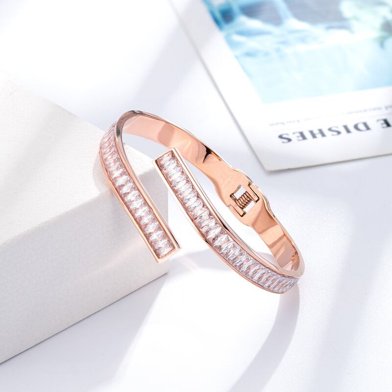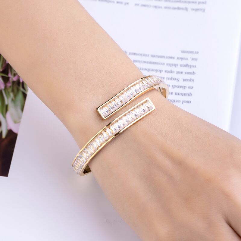 送料無料 チェーンクリスタルオープンスプリングブレスレット女性愛の結婚式のギフトステンレス鋼の宝石類 春物 アクセサリー AE00887774380876409