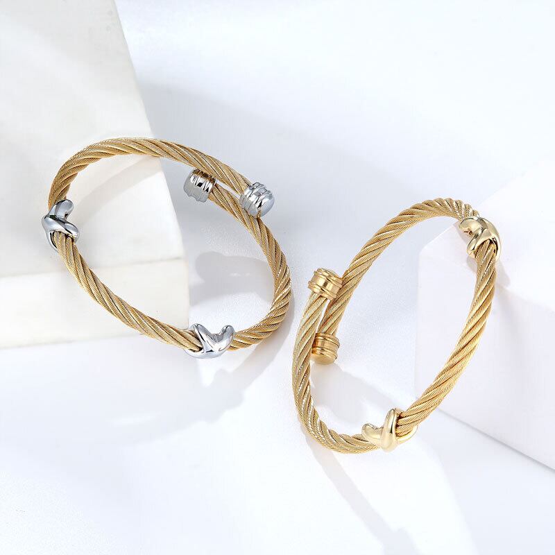 送料無料 ホットステンレススチールジュエリークリッククロスバックルツイストワイヤーブレスレット女性バングルラブパーティーギフト アクセサリー AE00887734426256362