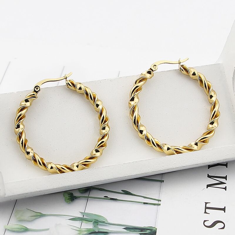 送料無料 ステンレス鋼の宝石類滑らかなツイストワイヤーツイストイヤリング女性のパーティーの結婚式のギフトE-513 指輪 アクセサリー AE00887771903850988