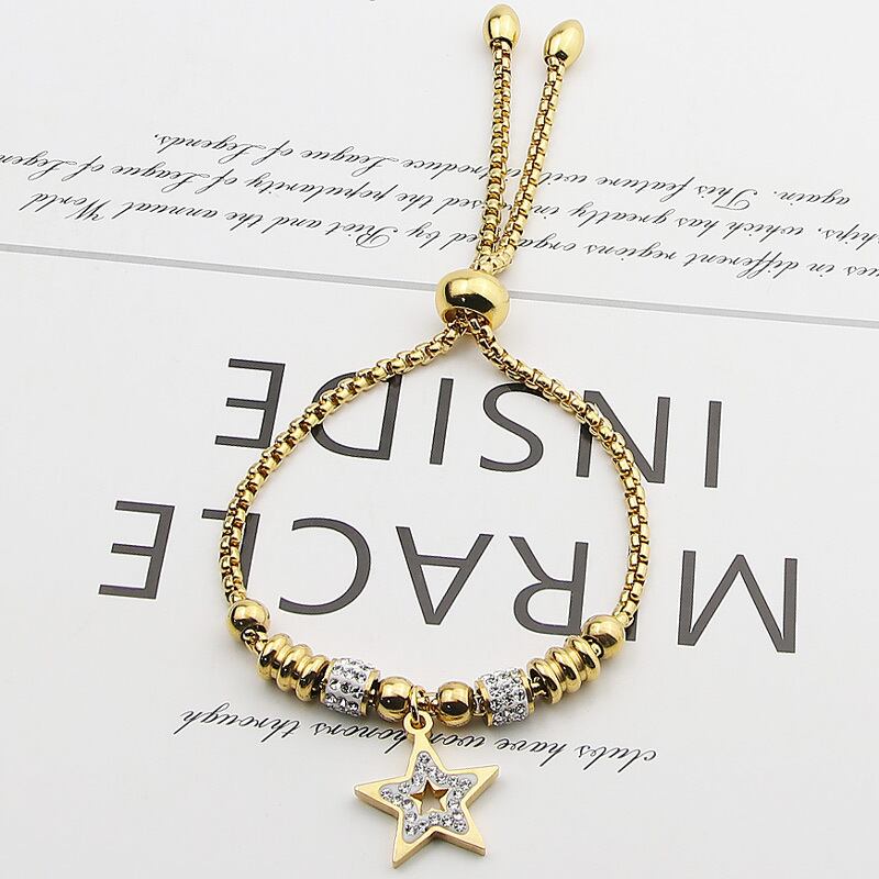 送料無料 美しい調節可能なサイズのジルコンスターブレスレット女性ステンレススチールビーズスネークチェーンブレスレットゴールドメッキジュエリー アジャスタブル アクセサリー AE0088779634759858