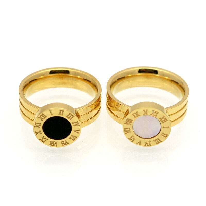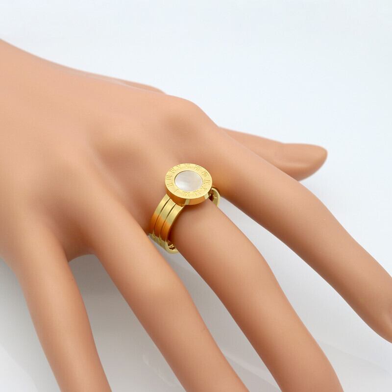 送料無料 女性の指輪メッキステンレス鋼の指輪女性のローマ数字のエナメルシェル高級ジュエリートップ リング アクセサリー AE0088774049191314