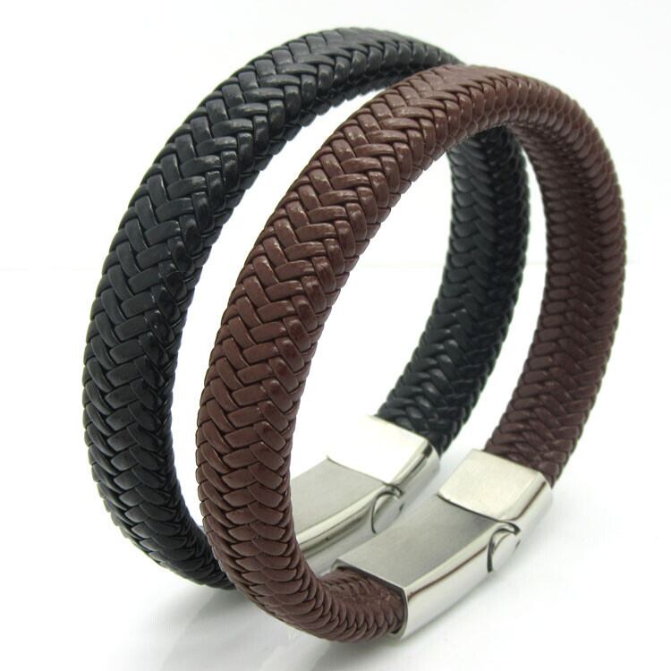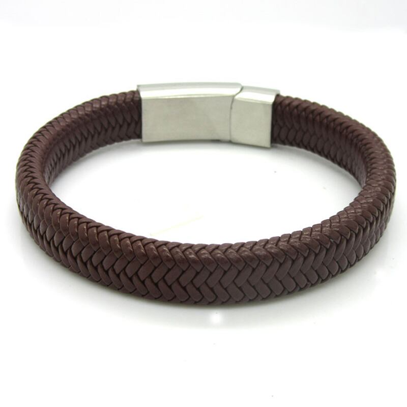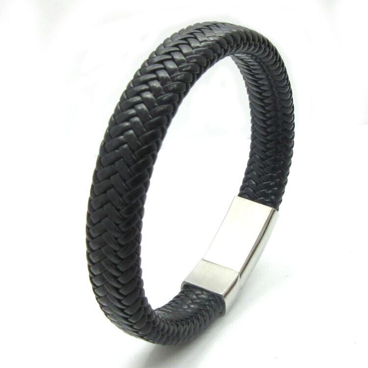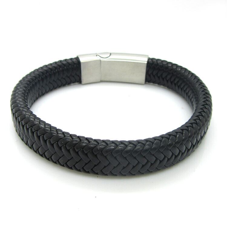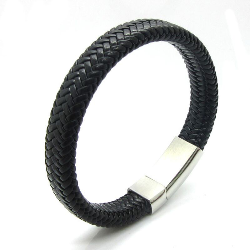 送料無料 ユニークな316Lステンレススチールブレスレット&バングルメンズギフトブラックレザーニット磁気クラスプブレスレットジュエリー アクセサリー AE00887797918578765