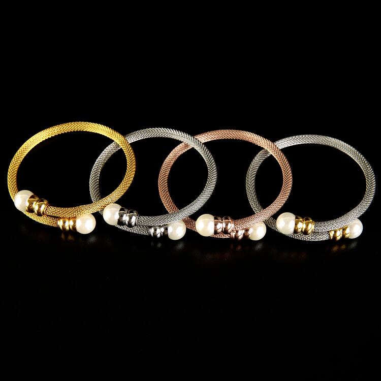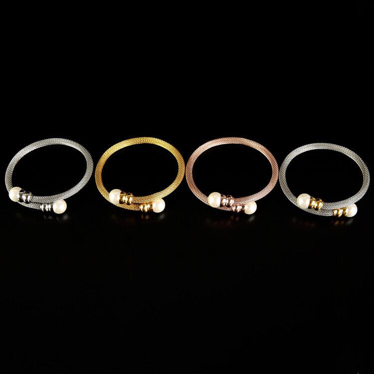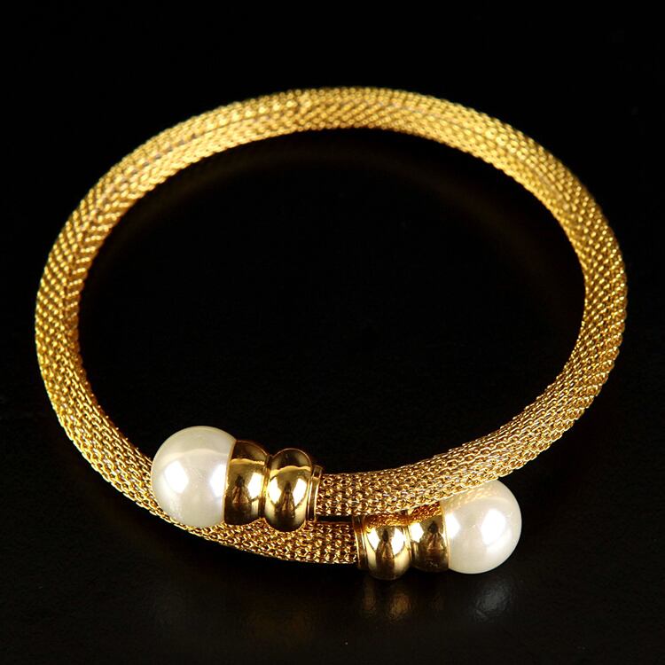 送料無料 ジュエリースーツトレンディなローズゴールドカラーパールメッシュマルチレイヤーチャームブレスレット&バングルレディウェディング 真珠 アクセサリー AE00887729874771710