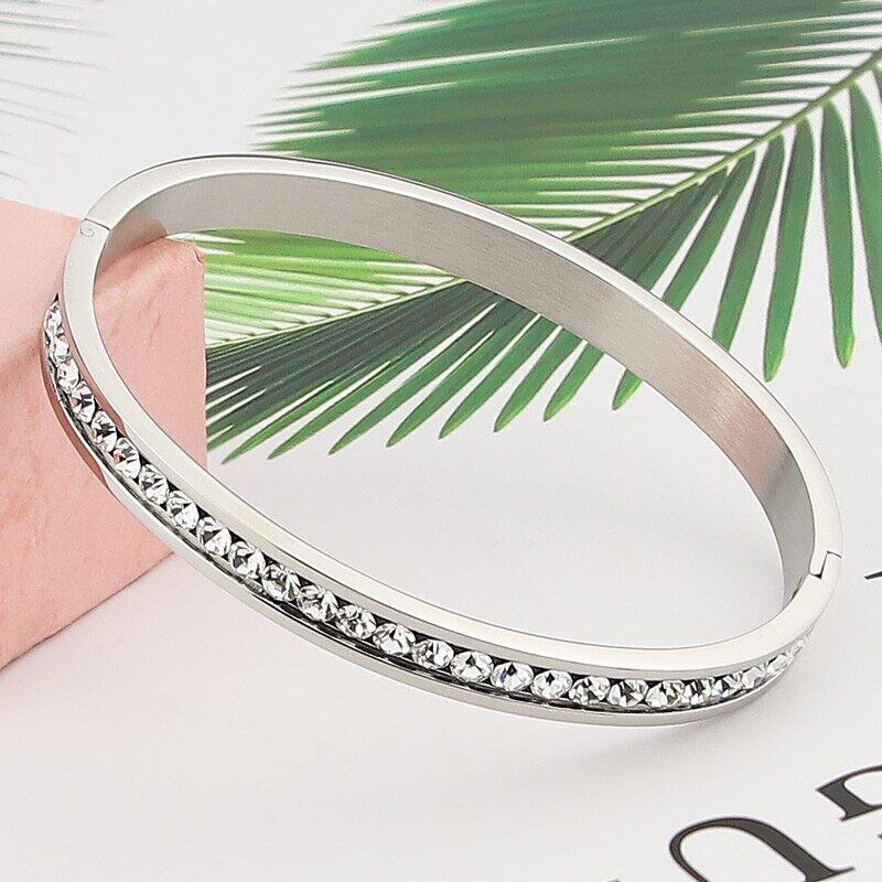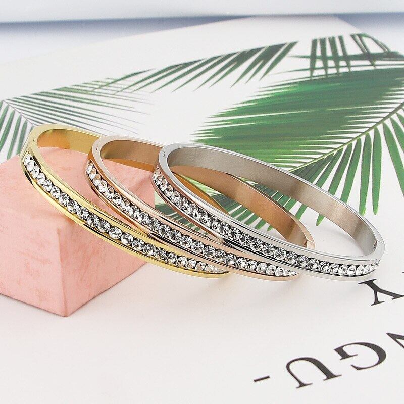送料無料 4mmスーパーフラッシュラウンドクリスタルブレスレットファッションシンプルな女性オールマッチチタンスチールバックルブレスレット卸売価格 アクセサリー AE00887727649744367