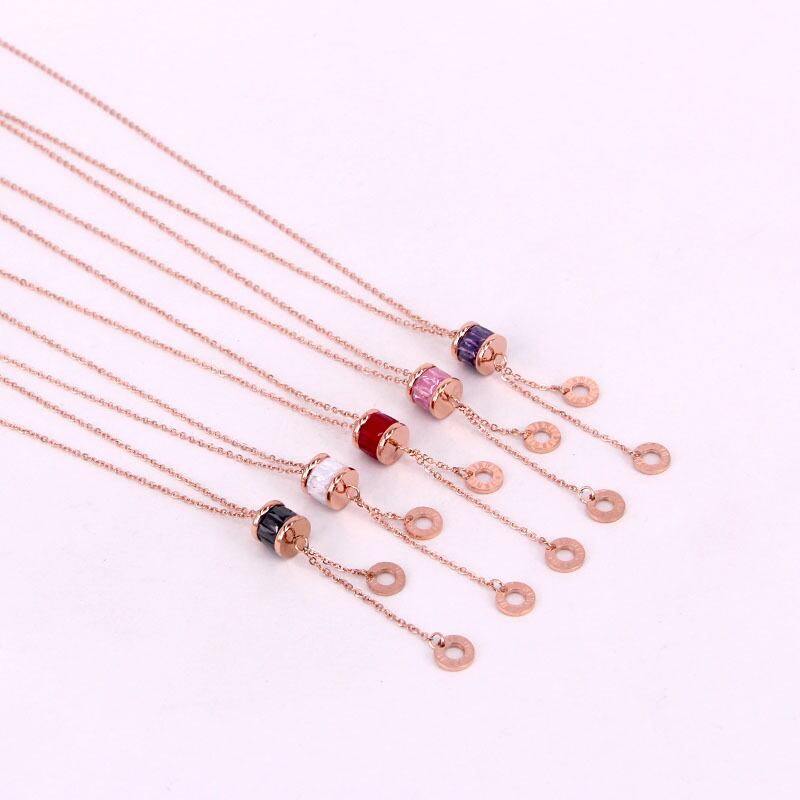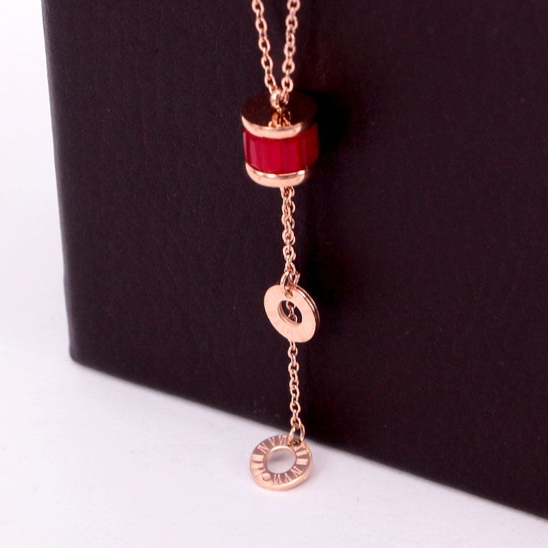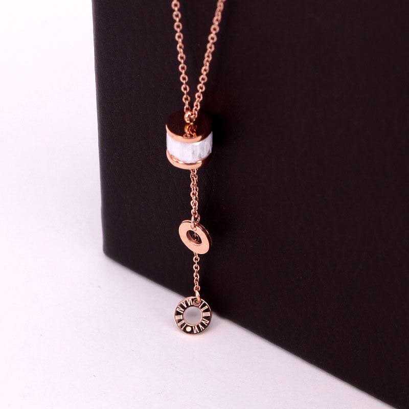 送料無料 気質氷晶石ぶら下げダブルローマ数字サークルテルローズゴールド女性ネックレス、卸売ジュエリー女性 レース アクセサリー AE00887720991979059