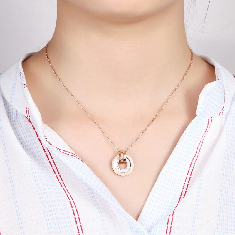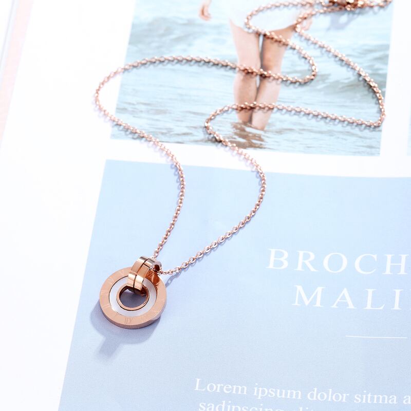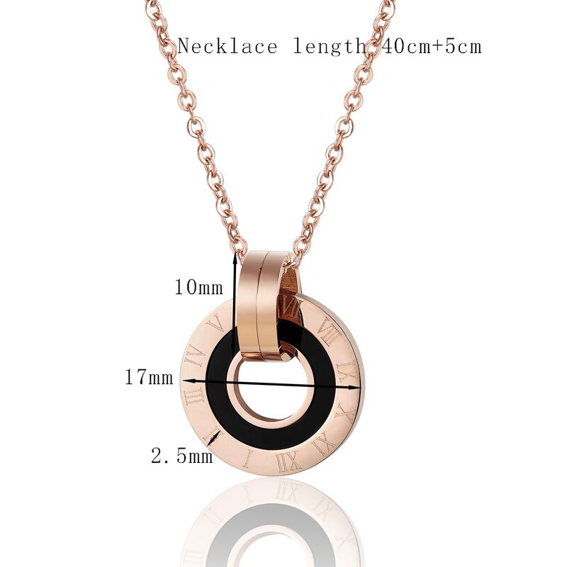 送料無料 インナーサークルホワイトシェルとブラックエナメルローマ数字ペンダントネックレスステンレススチールローズゴールドウーマンネックレス レース アクセサリー AE00887737085030355